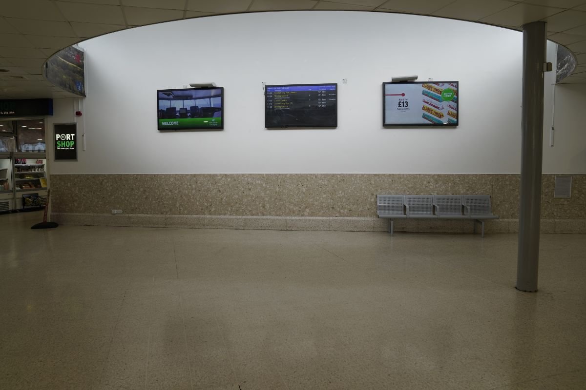 - Op deze rotonde leidt de eerste afslag naar een terminalgebied waar je maximaal 20 minuten mag parkeren. De tweede afslag brengt je naar de sorteerbanen voor de ferry: vrachtverkeer links, personenauto’s rechts.