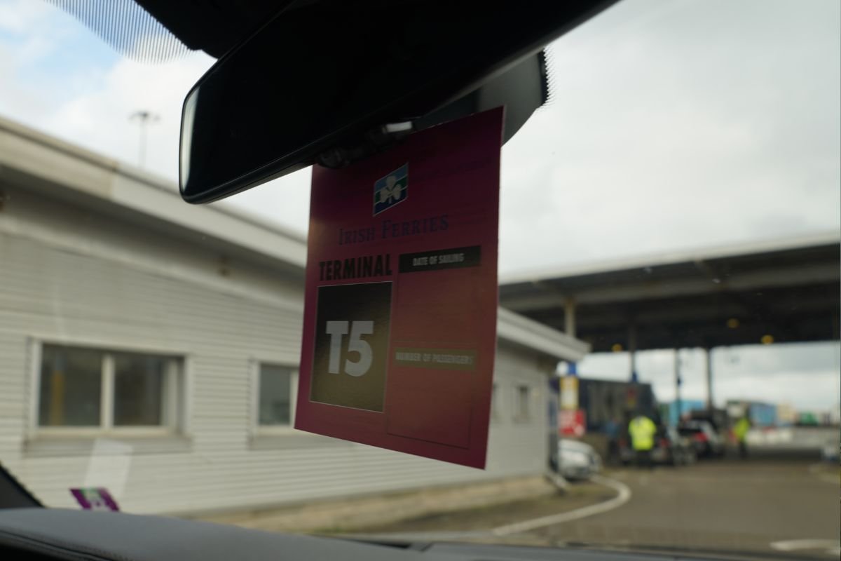 Bij het inchecken ontvang je een hanger voor je achteruitkijkspiegel die aangeeft welke route je moet volgen. Vervolgens ga je door de douane; deze controles kunnen grondig zijn, dus zorg dat je weet wat je wel en niet mee mag nemen naar Ierland.