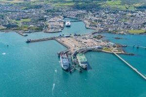 Holyhead Port is located on the island of Anglesey in North Wales. It offers excellent road connections, positioned right at the end of the A55 dual carriageway. The port is around 1 hour and 40 minutes from Chester, 2 hours from Liverpool, and about 2 hours and 20 minutes from Manchester.: